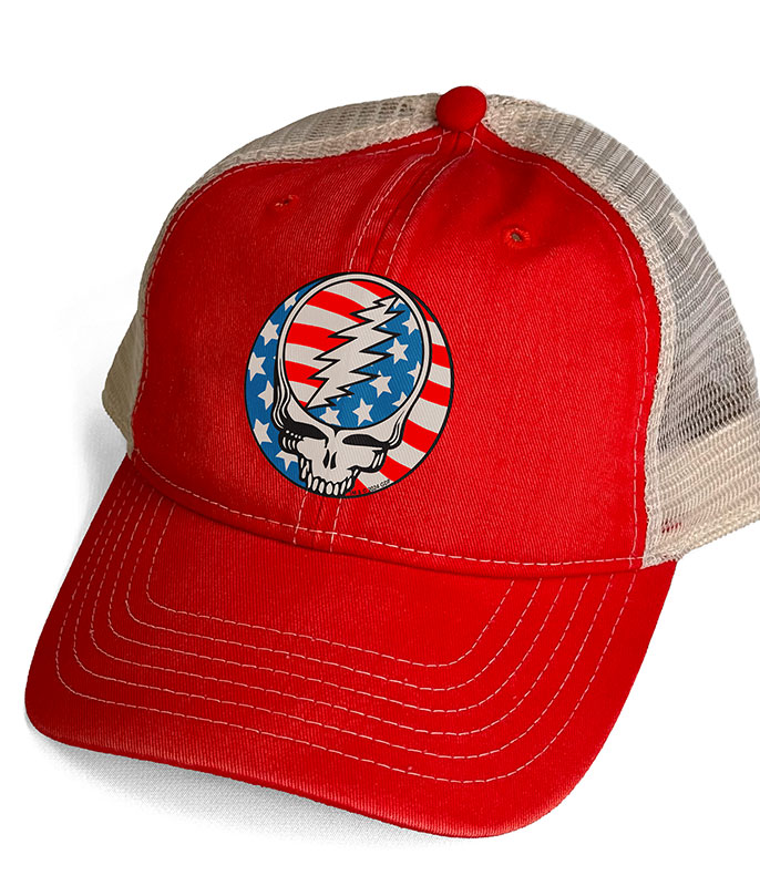Officially Licensed Grateful Dead Steal Your Face USA Hat printed in the USA by Liquid Blue. This Build Your Own Hat is adjustable to give you the perfect fit.