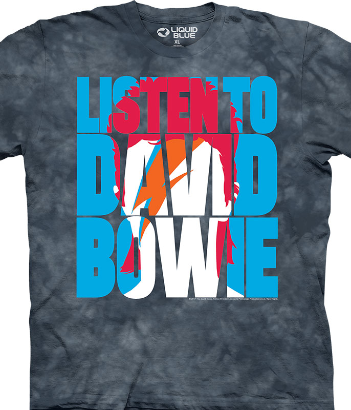 Officially Licensed David Bowie T-Shirt printed in the USA by Liquid Blue. You'll be able to match any outfit with a Liquid Blue Build Your Own T-Shirt. All prints are available in a wide array of sizes & colors.