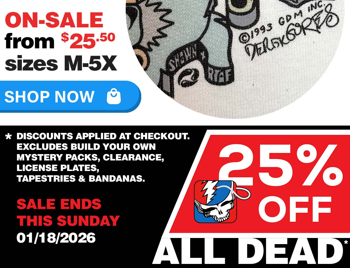 25% OFF ALL Grateful Dead™ SALE ends Sunday! *some exclusions apply see details.