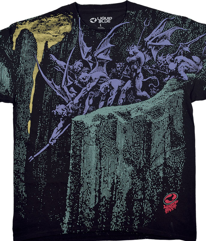 Beautiful artwork on this shirt. More is one of my favorite illustrators and honestly I wish Liquid Blue would create more shirts with his illustrations from Dante's Inferno.