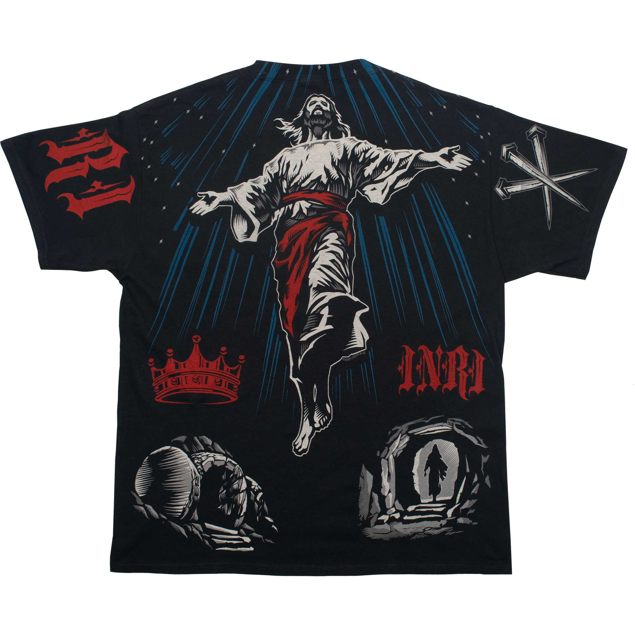 Back by popular demand our Jesus Ascension Tee. Printed both sides and all over sleeves. 100% heavyweight cotton, pre-washed and pre-shrunk.