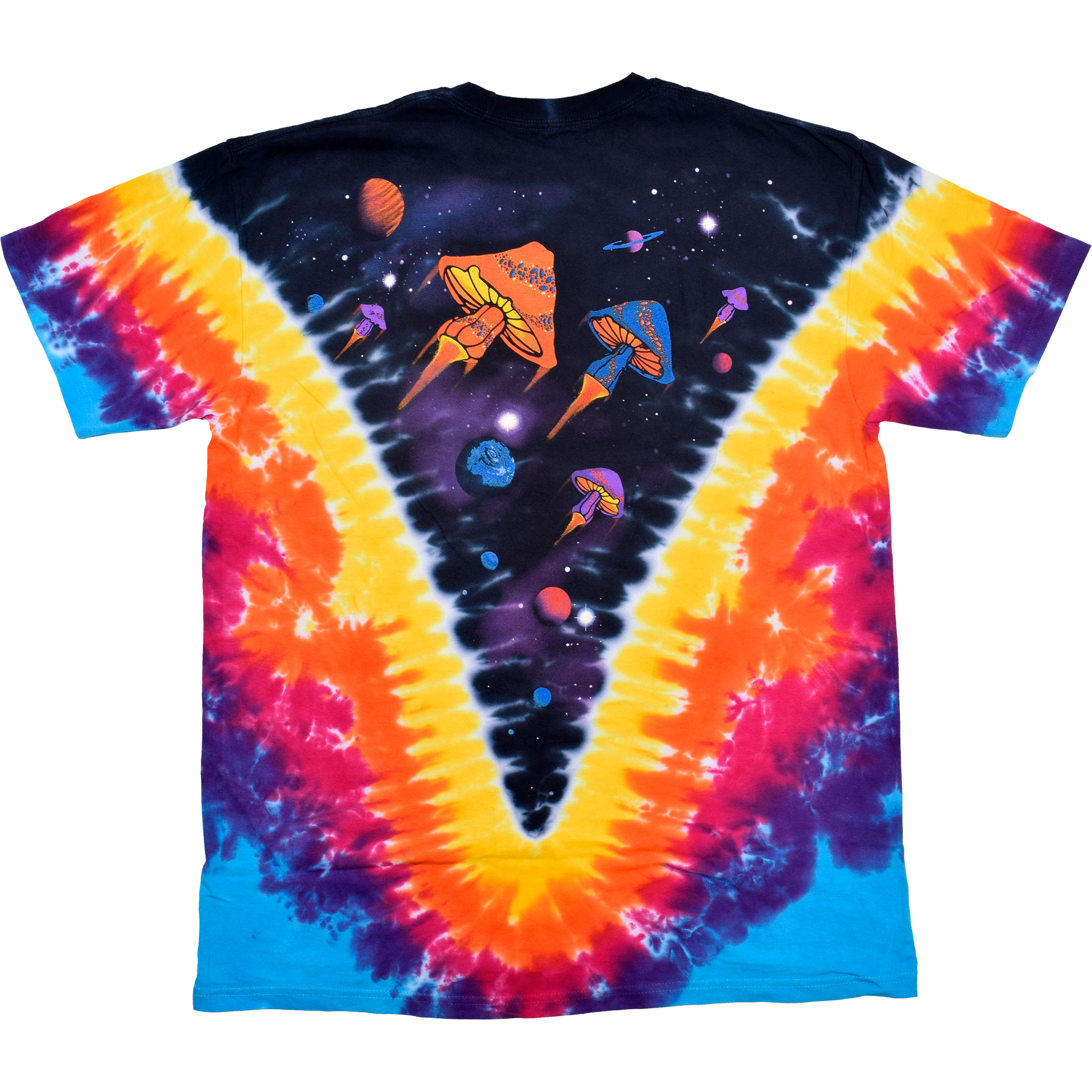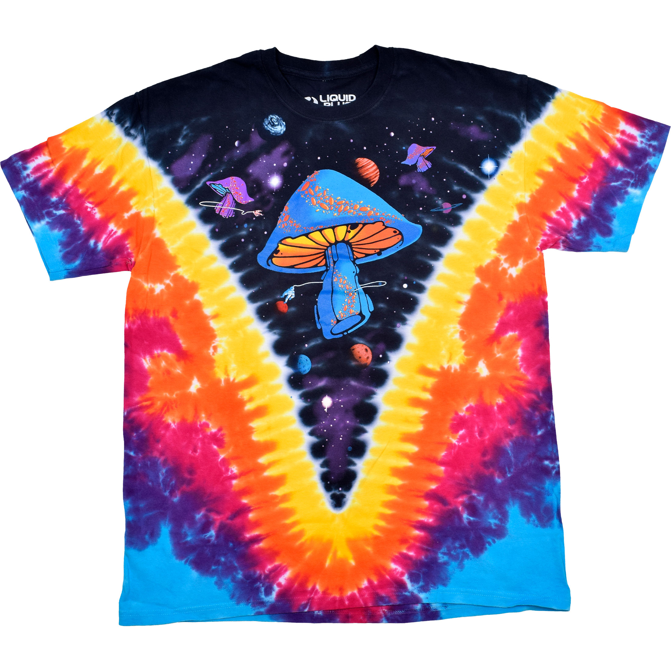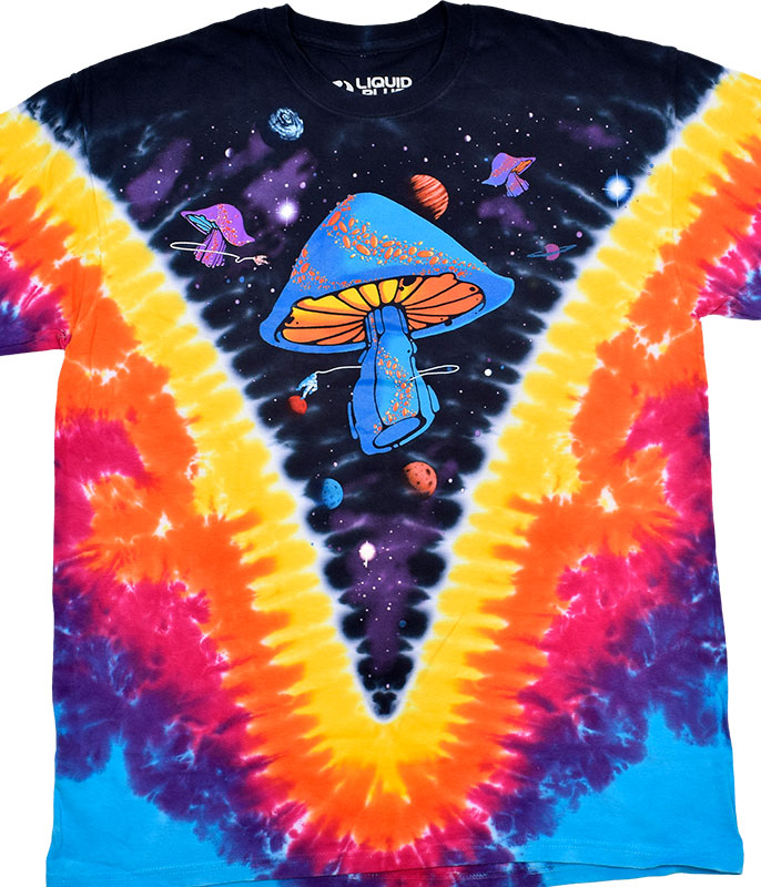 The mushroom T-shirts have long been favorites in the Liquid Blue Fantasy T-shirt line. Major shroomage for all! Of course this shirt is 100% heavyweight cotton, pre-washed and pre-shrunk. This Fantasy T-shirt features some wild mushroom imagery set against a stunning tie-dye design. The Space Shrooms is definitely a classic.