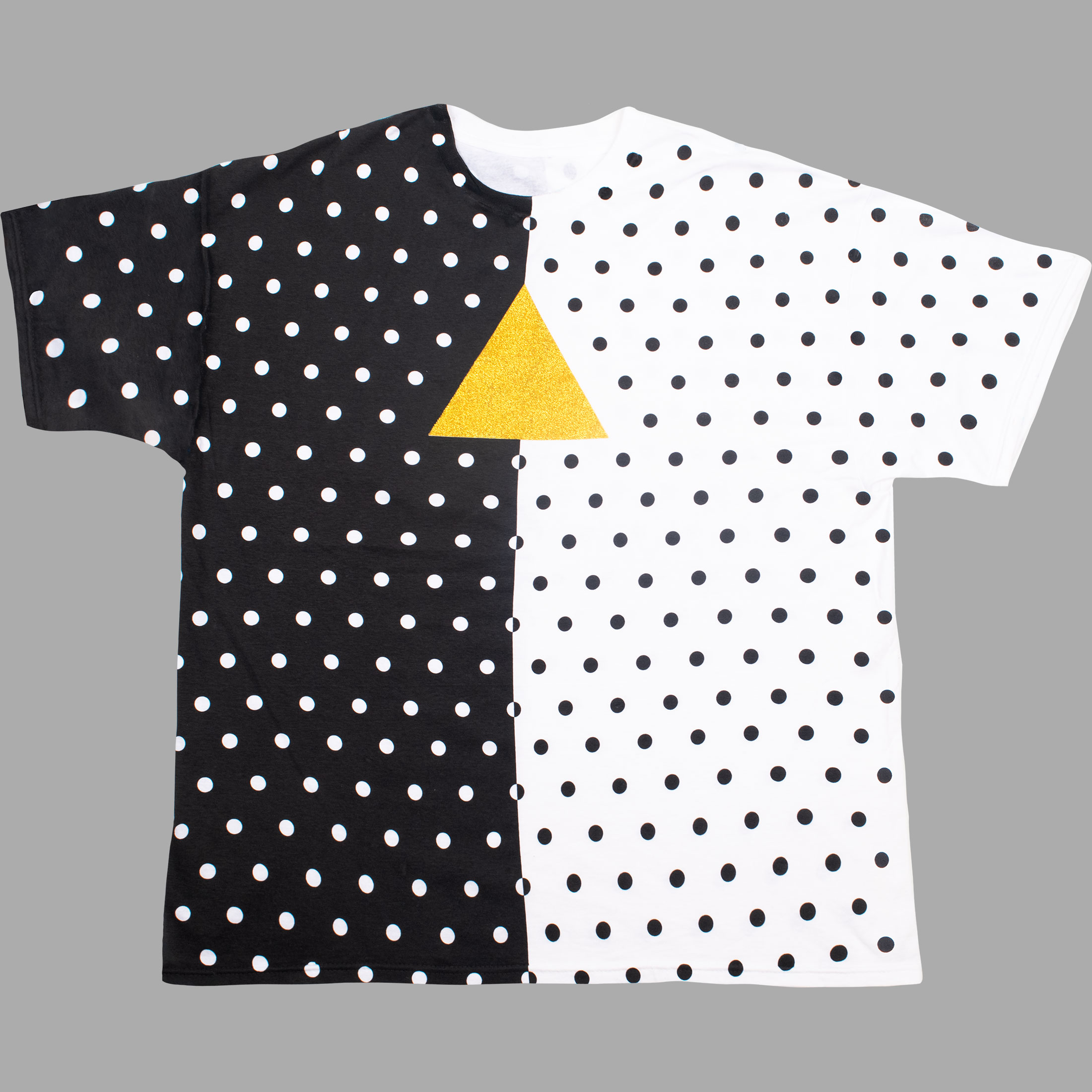 New for 2026 Polka-Dot White Tee. Printed All over both sides with a Special Gold Glitter Ink. 100% heavyweight cotton, pre-washed and pre-shrunk.