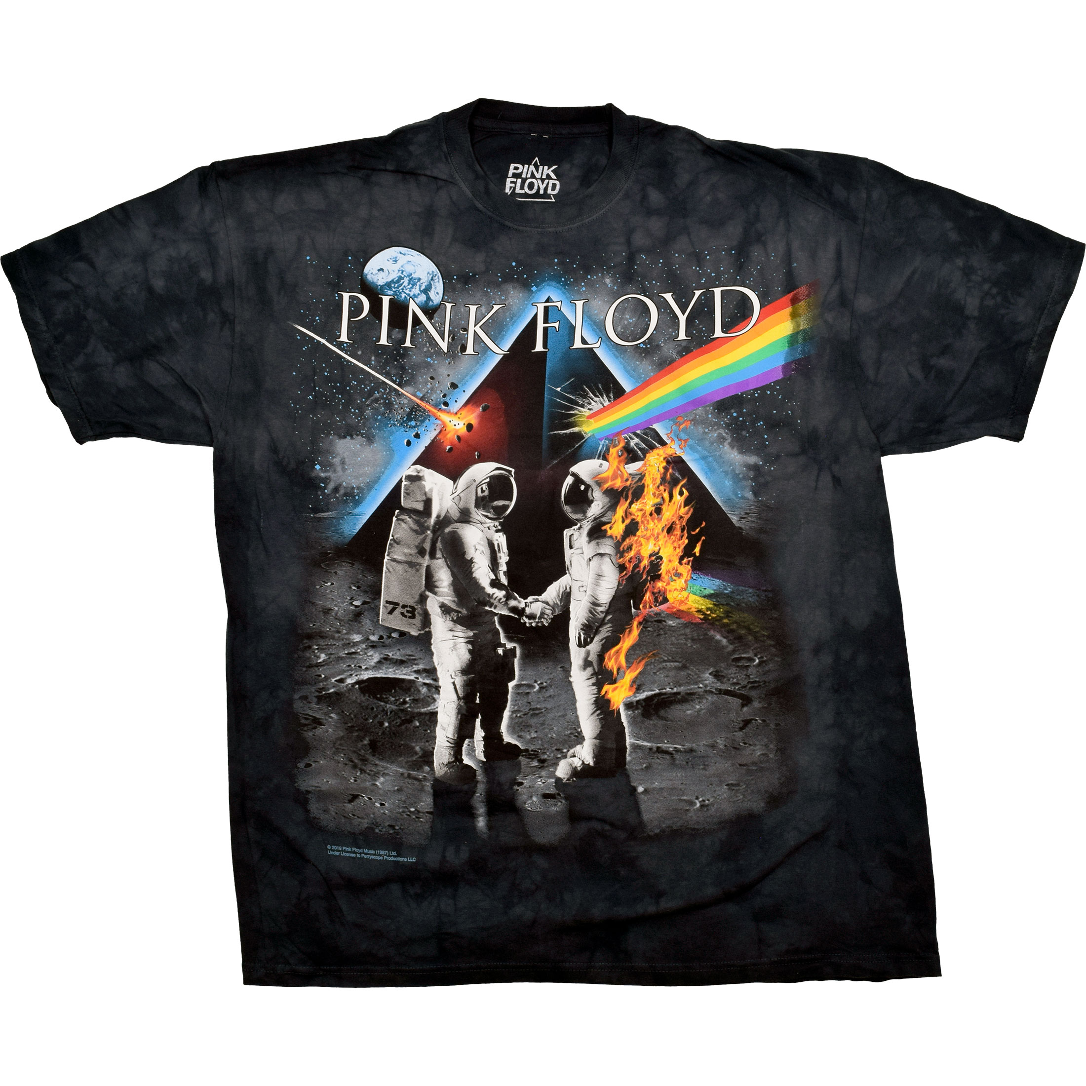 In recognition of the 50th anniversary of the first manned landing on the Moon July 1969. Officially Licensed Pink Floyd Graphic T-Shirt, Tee, Tie-Dye designed, dyed and printed in the USA by Liquid Blue.